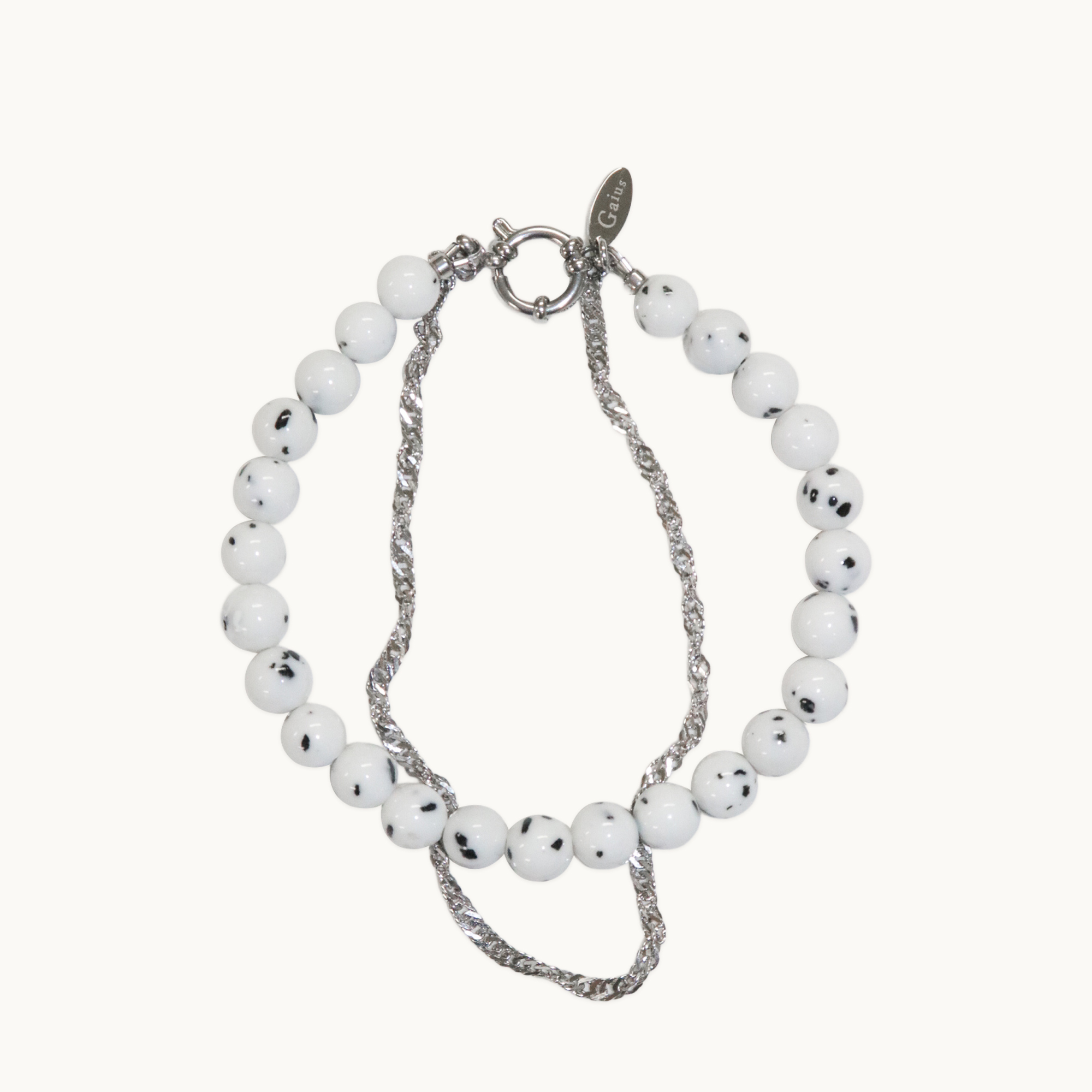 옷에 달린 도트무늬 싸개단추를 보고 도트를 닮은 원석을 찾다가 발견한 점송석으로 발찌를 만들었습니다. 빛을 받을 때마다 반짝이는 체인과 함께요. 하나를 착용했는데 두 개를 착용하는 느낌이 드는 dot stone anklet은 당신의 발목에서 반짝이며 일상에 기분 좋은 포인트가 될 거예요.