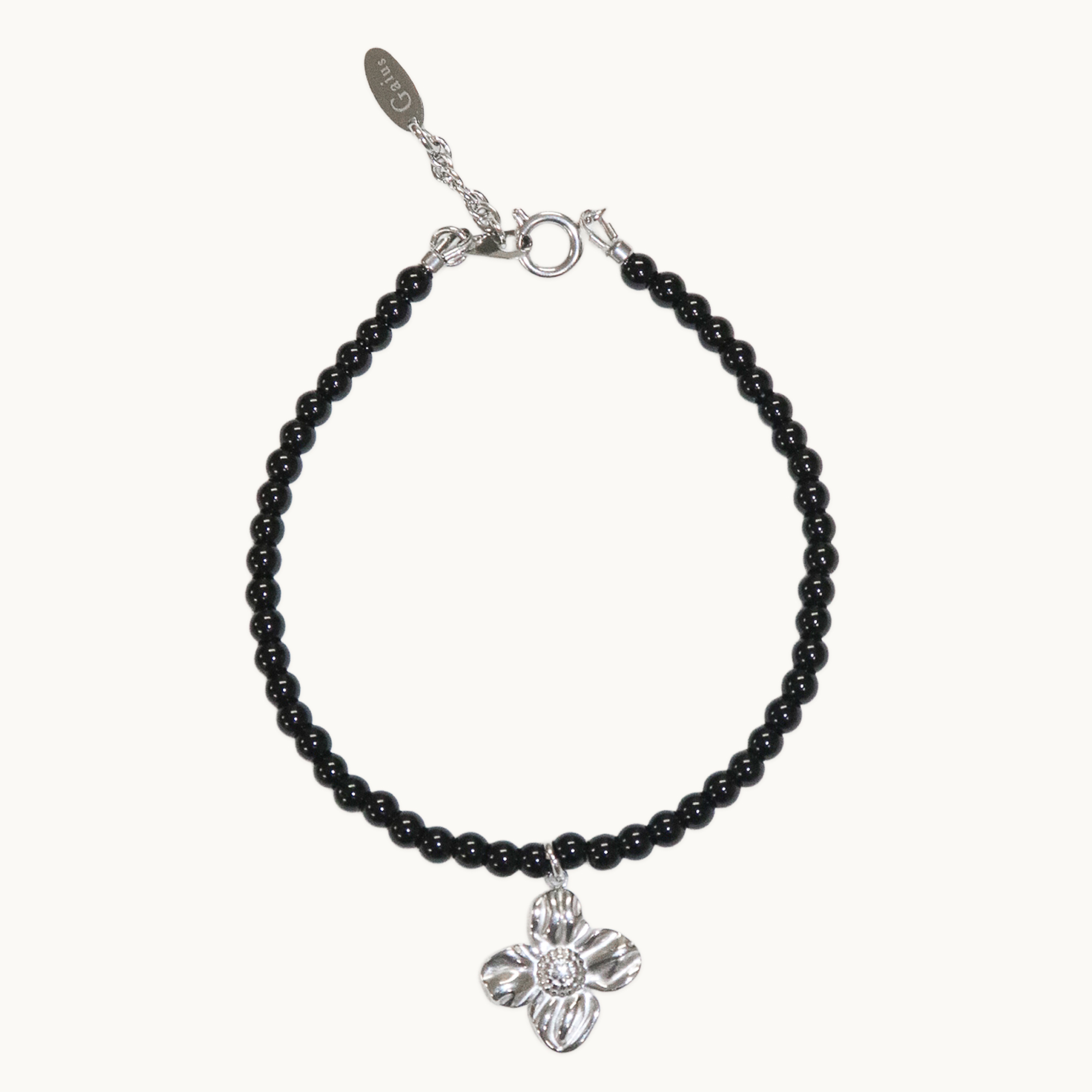 할머니의 빛바랜 꽃모양 브로치는 세월이 묻어 있어 그런지 예쁘게 느껴졌어요. 흑석을 팬던트와 엮어 귀여운 발찌를 만들었습니다. 얌전하지만 존재감있는 flower pendant ankletd은 당신의 일상에서 기분 좋은 포인트가 될 거예요.