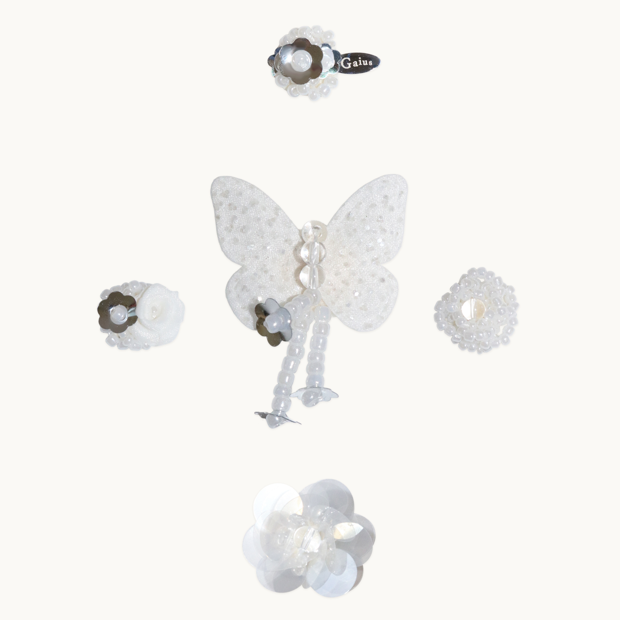 나비를 패브릭 소재로, 정원에 핀 다양한 꽃을 스팽글과 비즈, 패브릭의 다양한 소재로 조합해 가이오의 정원을 표현했습니다.