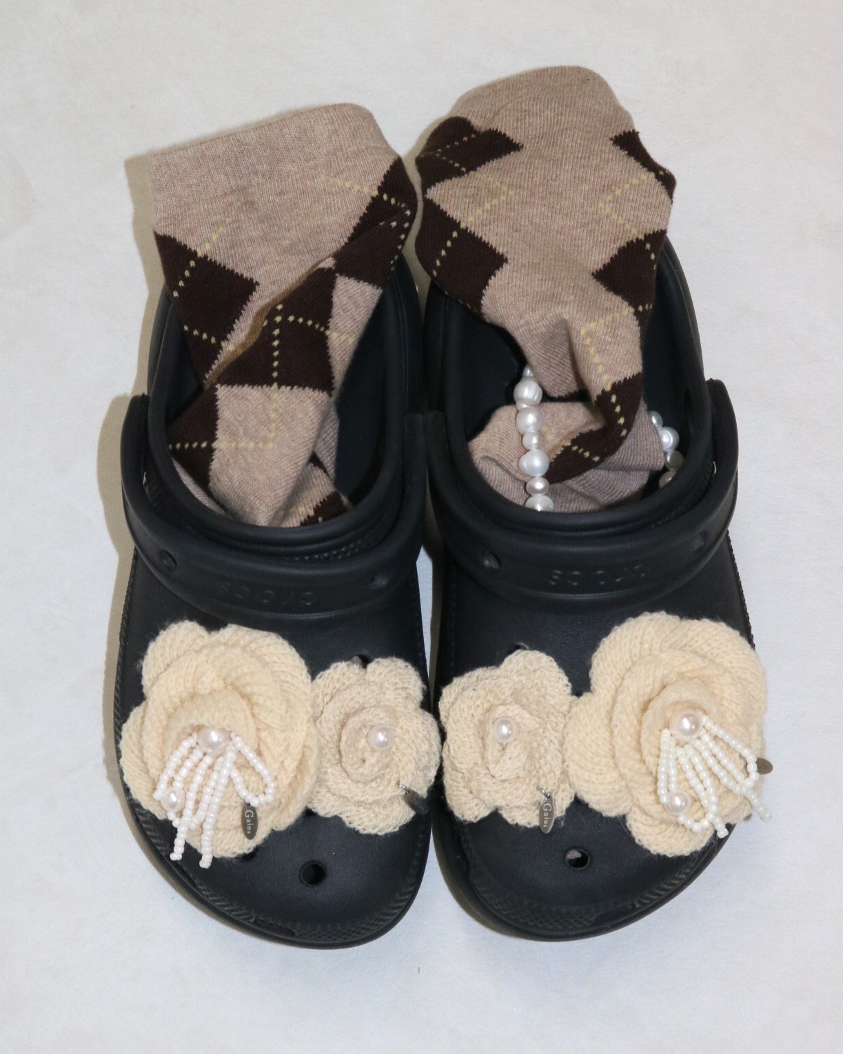 진주 장식이 달린 할머니의 브로치를 생각하며 만든 슈참입니다. 할머니의 카디건에 기분 좋은 분위기를 더했듯 우리의 신발에, 발끝에 기분 좋은 포인트가 될 거예요.
