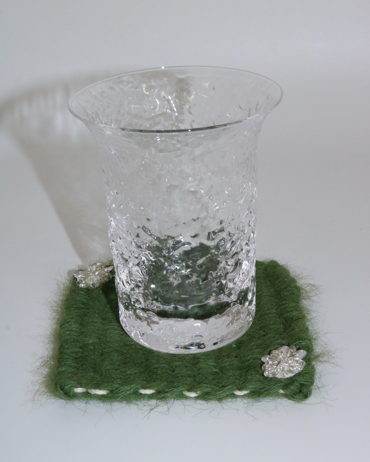 헤어리한 텍스처의 실로 엮은 바탕 위에, 가이오만의 꽃을 수놓은 코스터입니다.