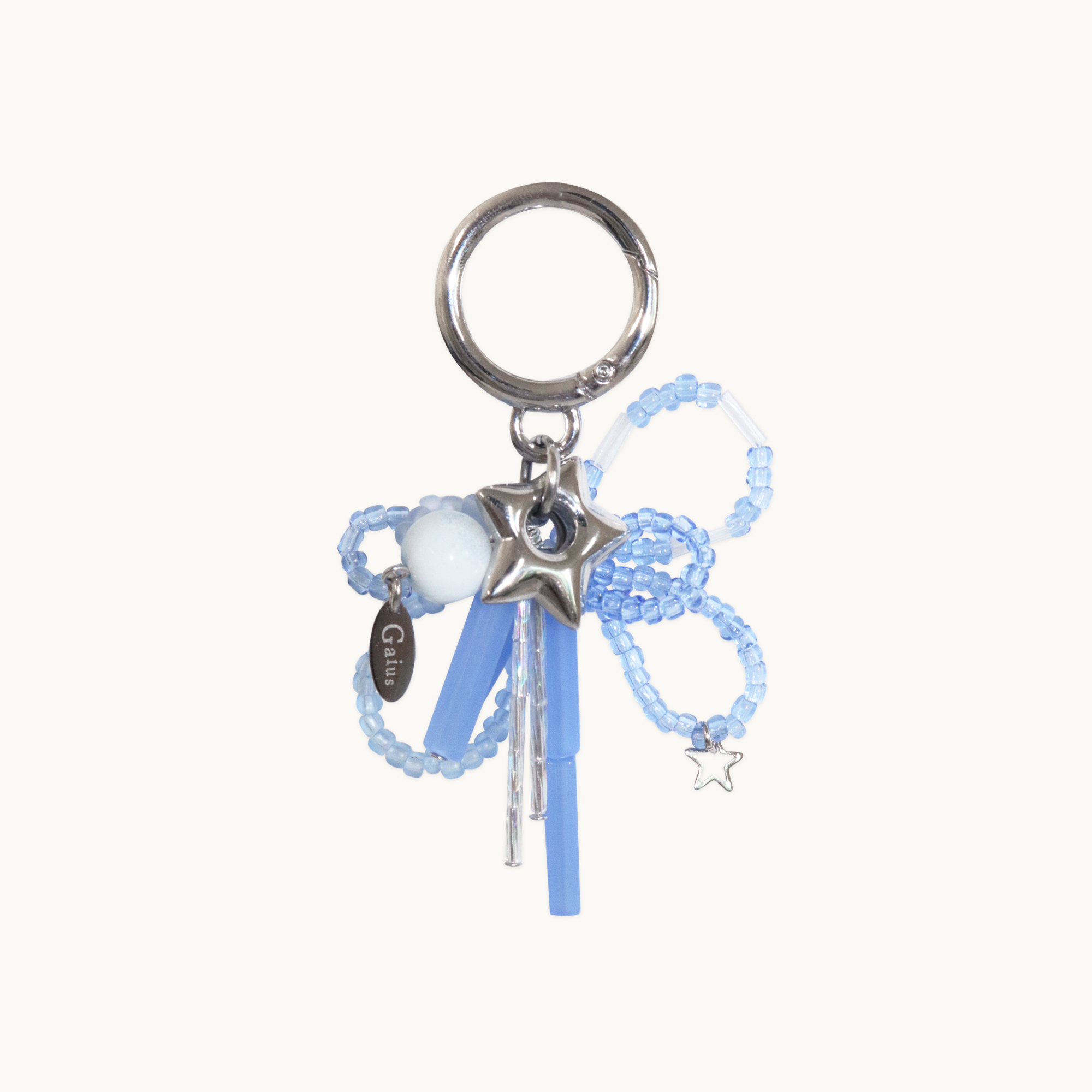 산뜻한 블루 계열의 비즈로 제작한 리본과 별을 함께 매치해 사랑스러움과 귀여움을 극대화시켰습니다.