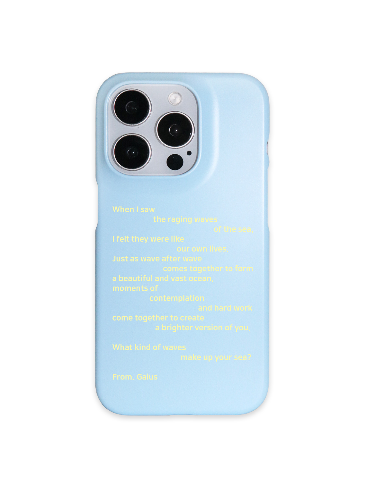 하늘색 바탕에 바다를 보고 쓴 단상을 옮겨 적었습니다. 겹겹이 쌓인 파도를 형상화하기 위해 활자를 파도처럼 배치했어요. 단독으로 쓰여도, 키링이랑 같이 쓰여도 청량합니다. 이 여름처럼요-!