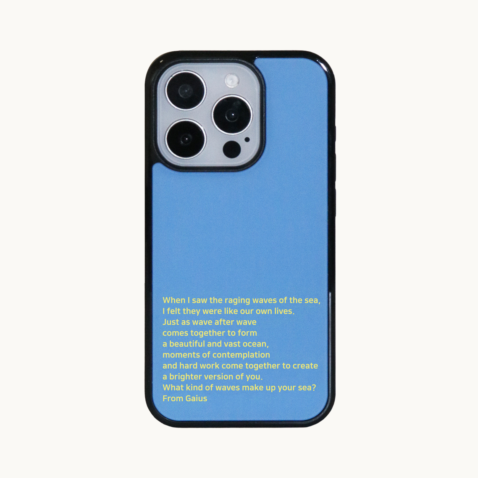 When I saw the raging waves of the sea, I felt they were like our own lives. Just as wave after wave comes together to form a beautiful and vast ocean, moments of contemplation and hard work come together to create a brighter version of you. What kind of waves make up your sea? From. Gaius