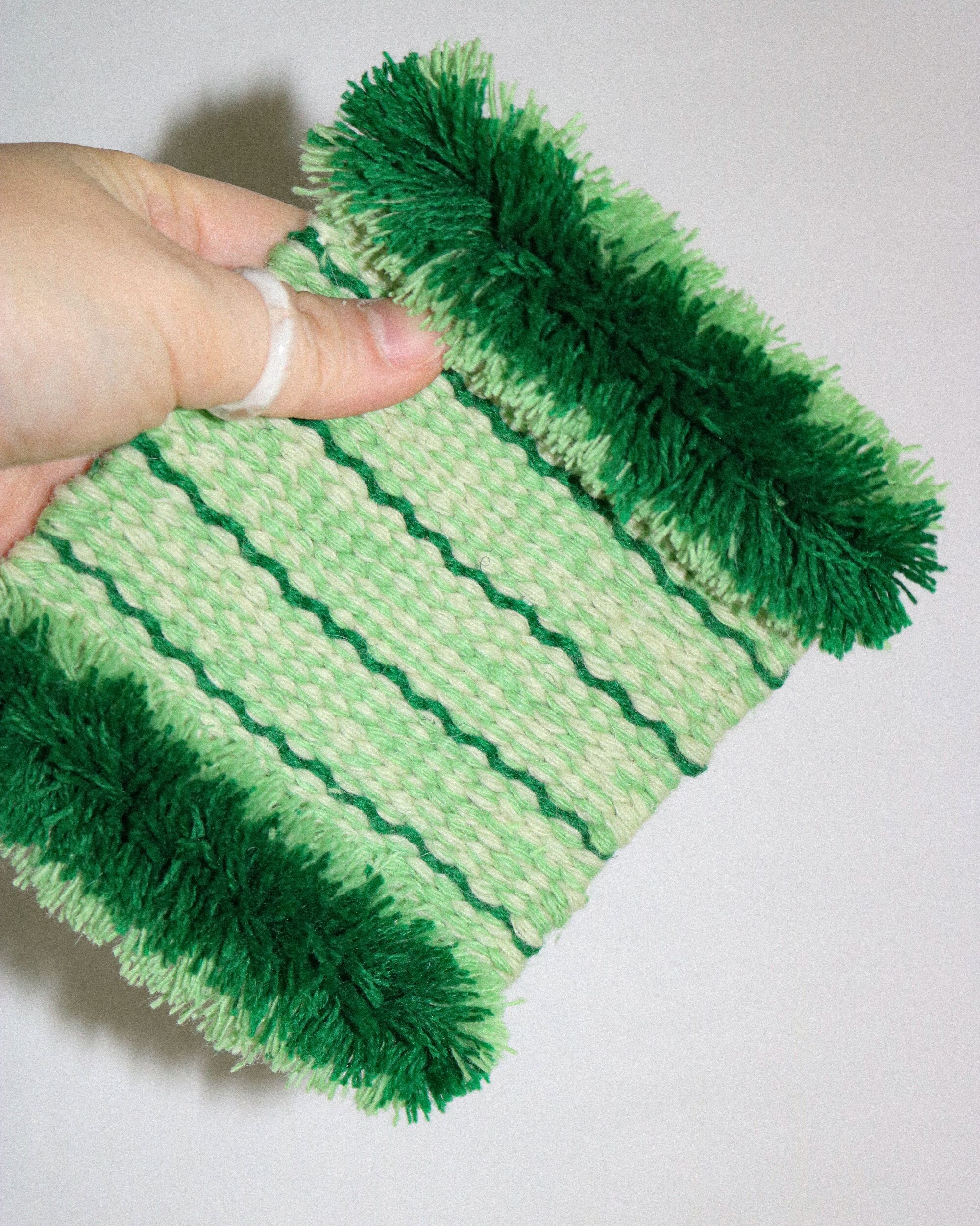 초록이 가득한 잔디밭을 걸을 때 신발을 산뜻하게 감싸는 잔디의 모습에 영감받아 제작된 코스터입니다.